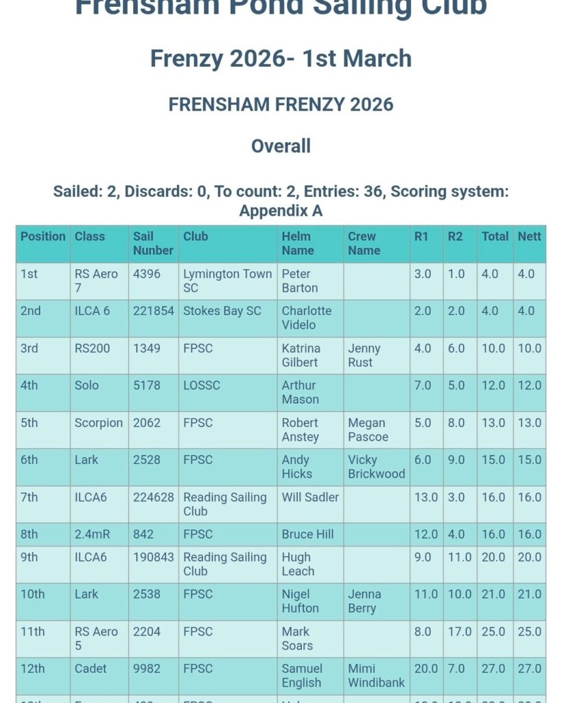 A big thank you to Frensham Pond SC for a great day of racing.