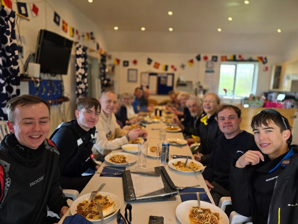 Having returned to shore for a hearty lunch of Spaghetti Bolognese, made by Ann, only 5 sailors went back out for the final race.