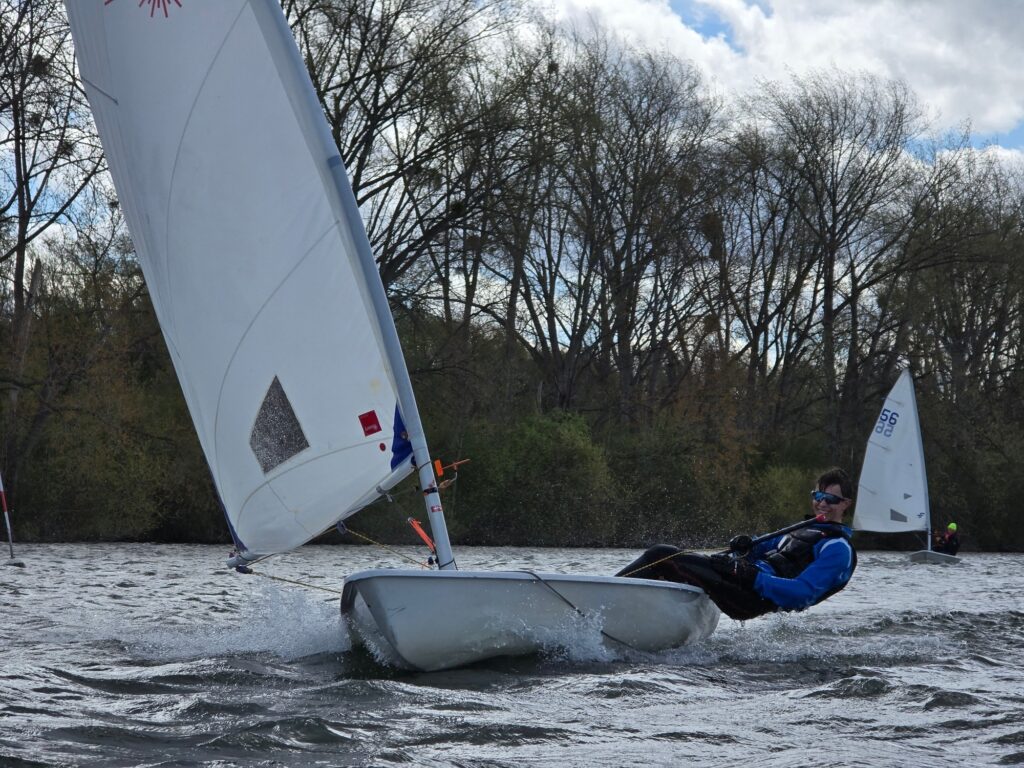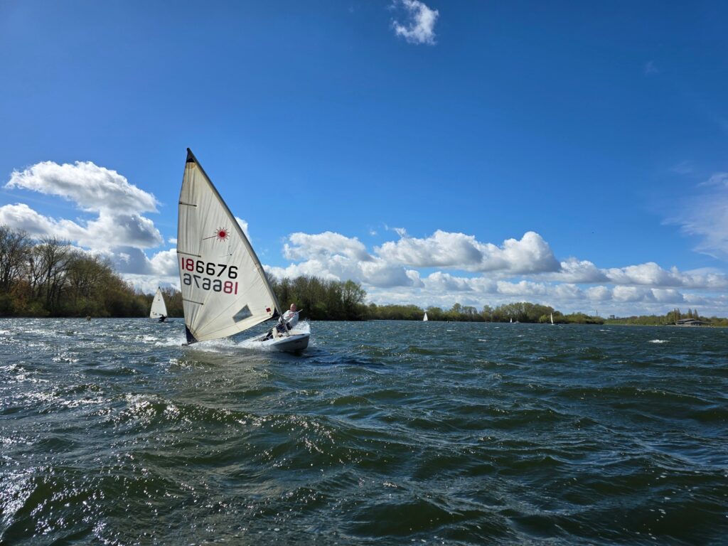 A challenging course utilised the whole of the lake, with two beats, several reaches and 4 gybes to contend with, no sailor remained upright across the day.