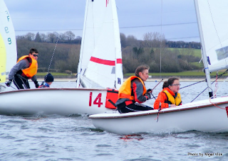 Early starter Chris H was first back through the line with Mick G (Otter) 2nd, Peter S (Byte) 3rd and fastest of the late starters Paul R (Aero) in 4th. Mike A (Lightning) was 5th but Ellen & Newton (RS200) were rapidly catching him. Peter R (Enterprise) was going steadily in 7th place with the first of the Lasers, Jon in 8th. Hadey (4.7) was 9th but under pressure from Roland & Ryan (National 12) who were just ahead of Steve S in the second of the Lasers. Dave I (Radial) was next through and he was about to be passed by David C (Laser) and then there were the late starters, Ian C (Supernova), Adrian (Rooster) and Dean & Nick (Vago)