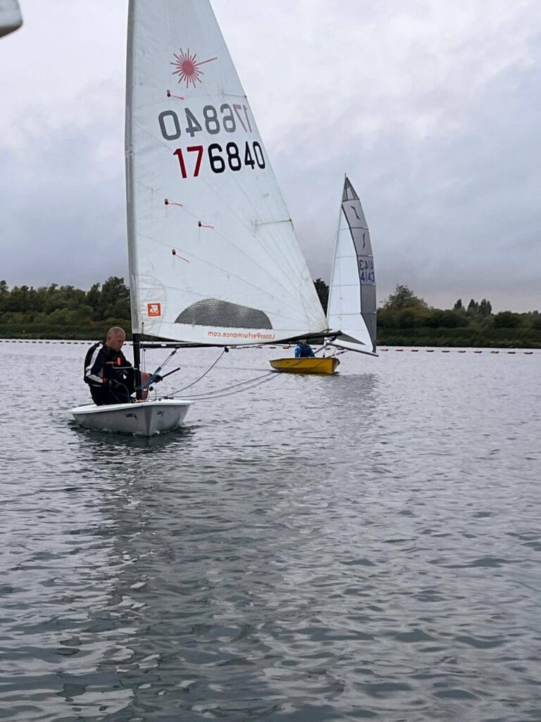 Further back, Mike T (Solo), Nigel, Steve S (ILCA7) & Ian (ILCA6) were all having a close battle, although Steve S edged ahead at the final lap.
