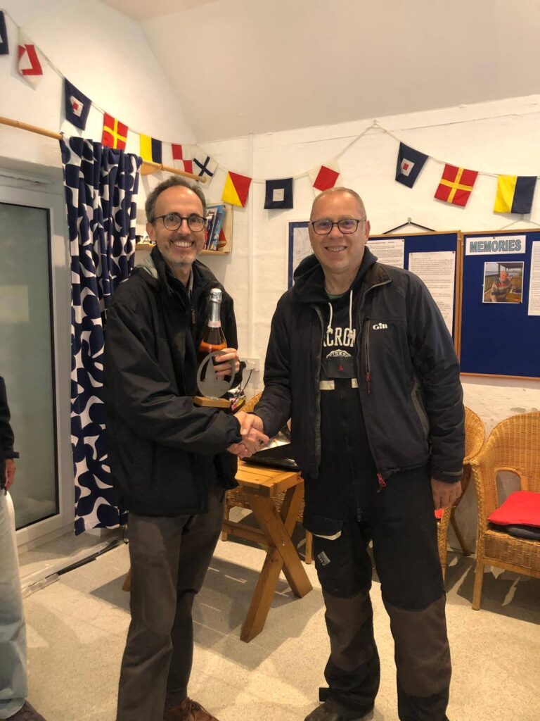 Newton managed to pass Chris H to get up to 3rd place, who dropped back behind the ILCA’s of Hugh & Chris K. Darren crossed the line 1st, with Will S 2nd & Newton 3rd. On handicap, Chris H won, with Will S 2nd & Chris K 3rd. A big thank you to Jess & her team for running the racing yesterday.