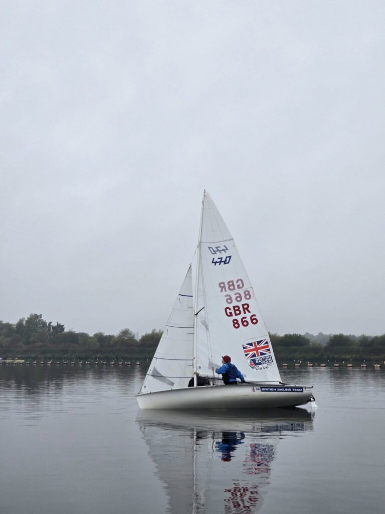 A long beat up to the far end of the lake had Mike & Alé (470) in first, followed by Hugh (ILCA7) & Rhys (ILCA6).